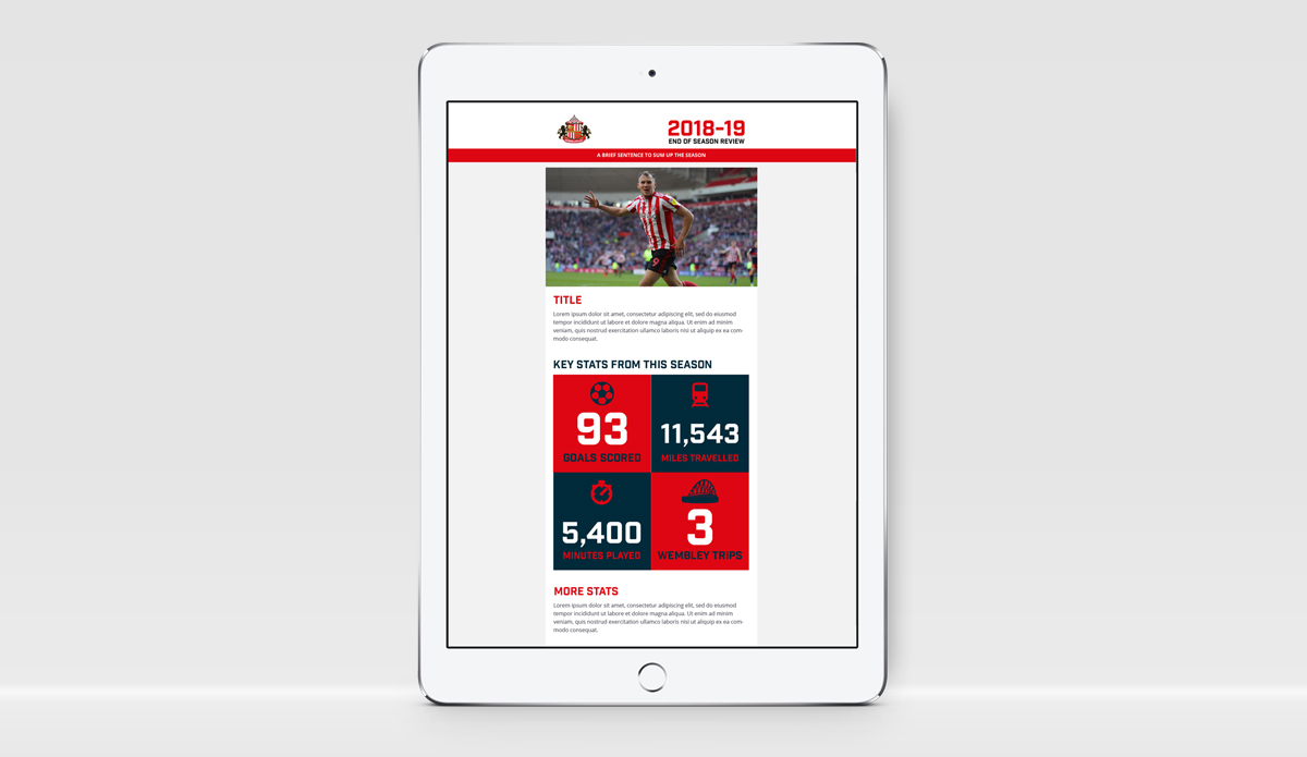 I was tasked with creating an End of Season Review email design for Sunderland AFC. Following the success of this email, Sunderland were keen to also get new email templates designed for their Pre- & Post-Match comms.
