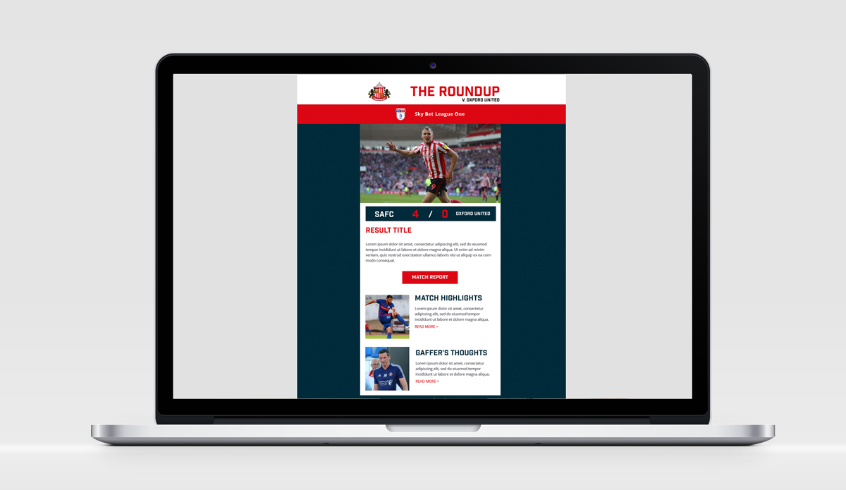 Following the success of the End of Season Review design, Sunderland wanted a new template designing for their pre- &ammp; post-match emails as well.
