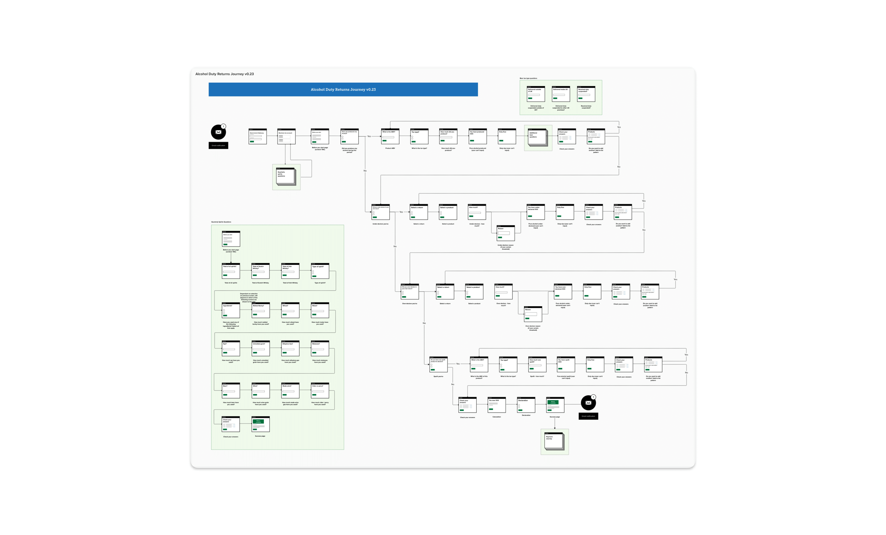 There were also some other areas of the journey that we were able to get changed based on user research findings: the spoilt and spirits production sections were also streamlined, with problematic data items dropped to enable users to complete these sections much faster as well.